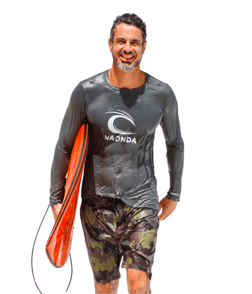 Rafael NaOnda, campeão mineiro de surf e professor com mais de 25 anos de experiência, garante segurança e progresso em cada sessão.